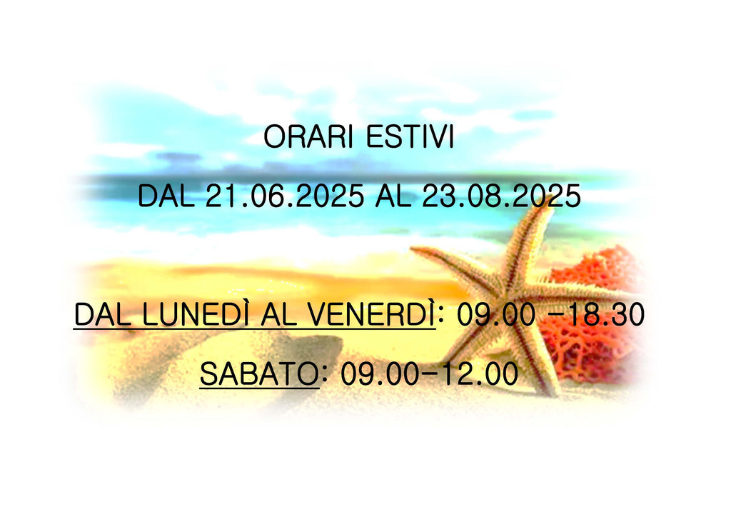 Lun - Ven, 9:00 - 12:00 / 13:30 - 18:30Sabato, 9:00 - 12:00 / 14:00 - 17:00