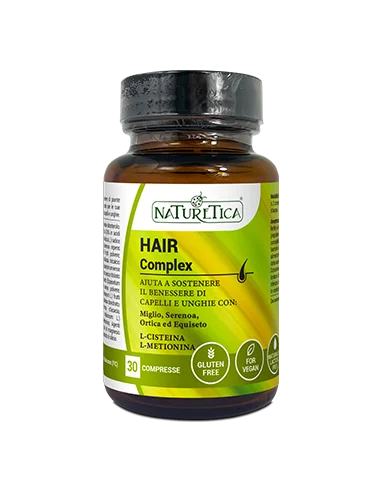 HAIR COMPLEX è un integratore alimentare formulato con estratti e polveri di piante officinali combinati con amminoacidi solforati; in particolare, il miglio, noto per le sue proprietà ricostituenti, insieme all’equiseto aiuta a sostenere il benessere di capelli e unghie.