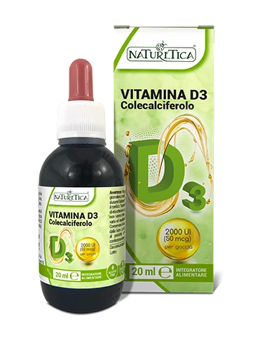 VITAMINA D3 2000UI/Goccia è un integratore alimentare a base di Vitamina D, la quale contribuisce al normale assorbimento/utilizzo del calcio e del fosforo, alla normale funzione muscolare e del sistema immunitario e al mantenimento di ossa e denti normali.